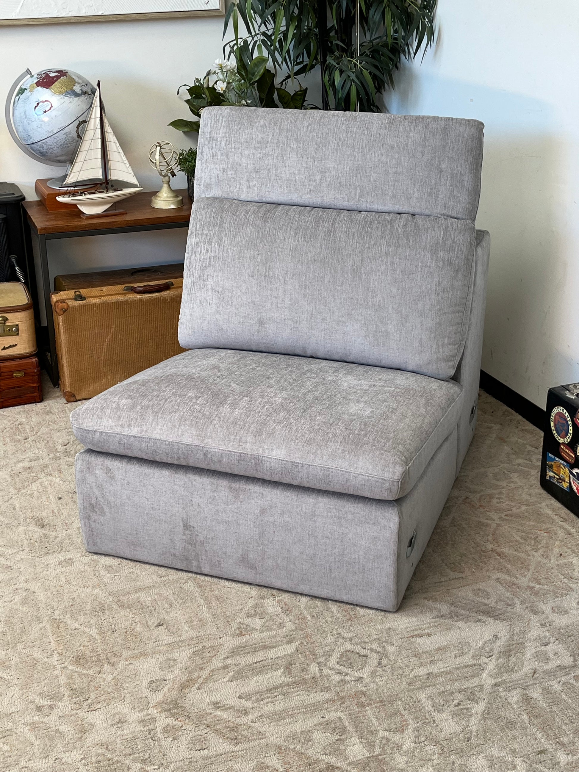 Armless Single Gray Linen Chair