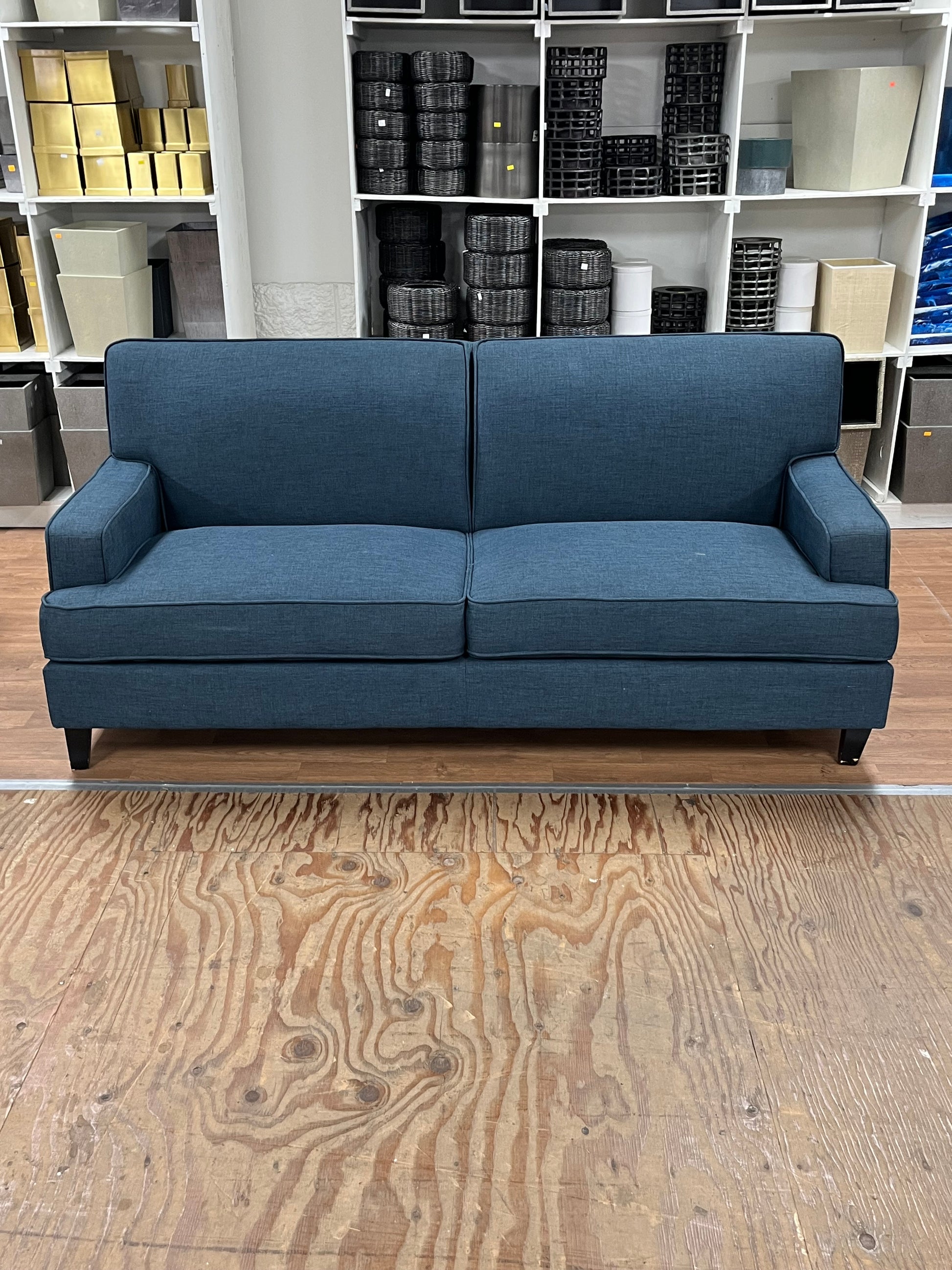 Modern Blue Linen Loveseat