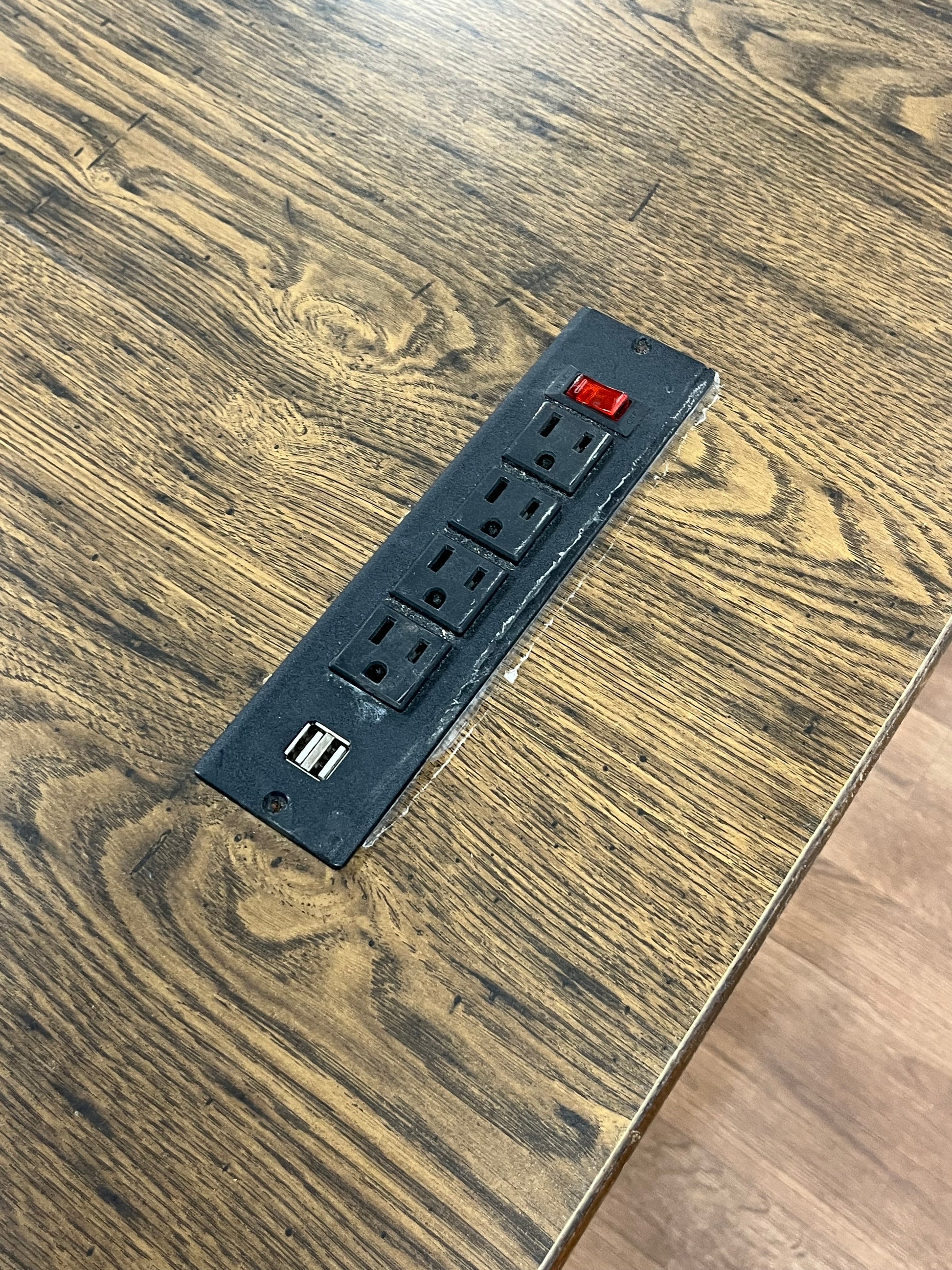 - Material: Wooden Construction with Power Strip Installed