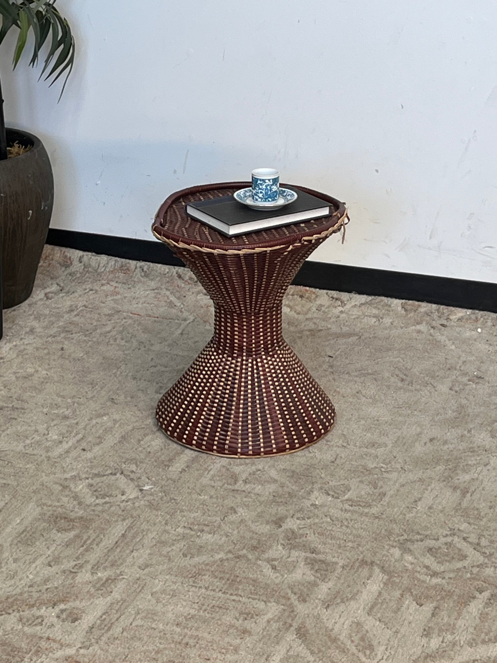 Woven Style Faux Rattan Hourglass Nightstand